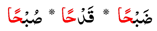 • Cara membaca Mad 'iwadh adalah tanwin (an) di hilangkan dan di baca seperti fatha biasa (a) dengan panjang 2 harakat.