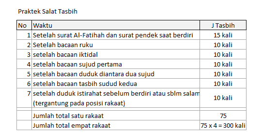 Itulah 75 kali dalam setiap rakaat. Jika engkau sanggup untuk melakukannya satu kali dalam setiap hari, lakukanlah. Jika tidak,